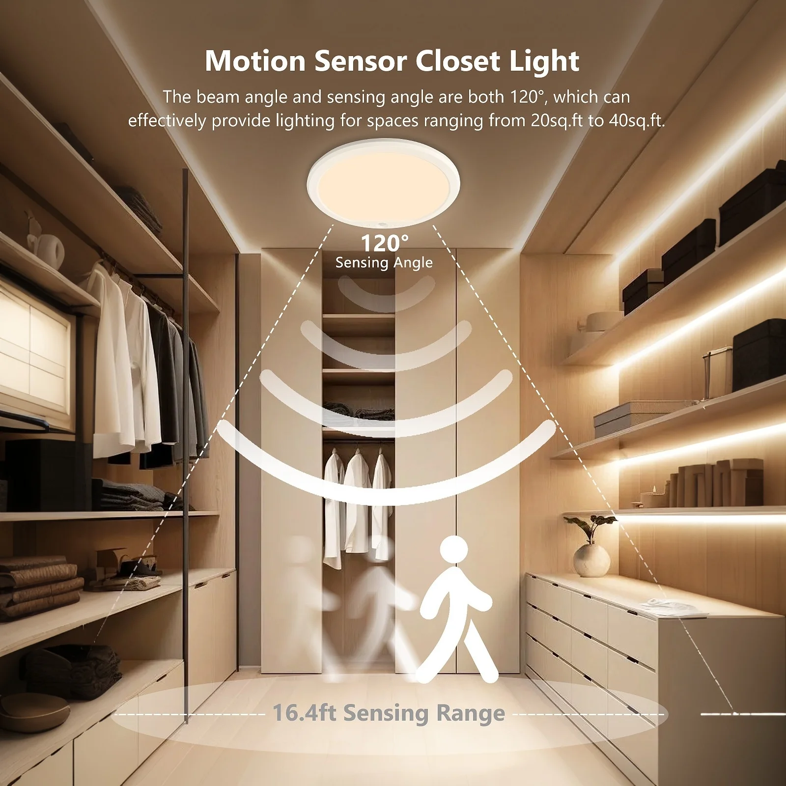 - Intelligent Motion Sensing: 120° sensing angle with a 16.4ft range. It "sees" you coming before you reach the dark spot.